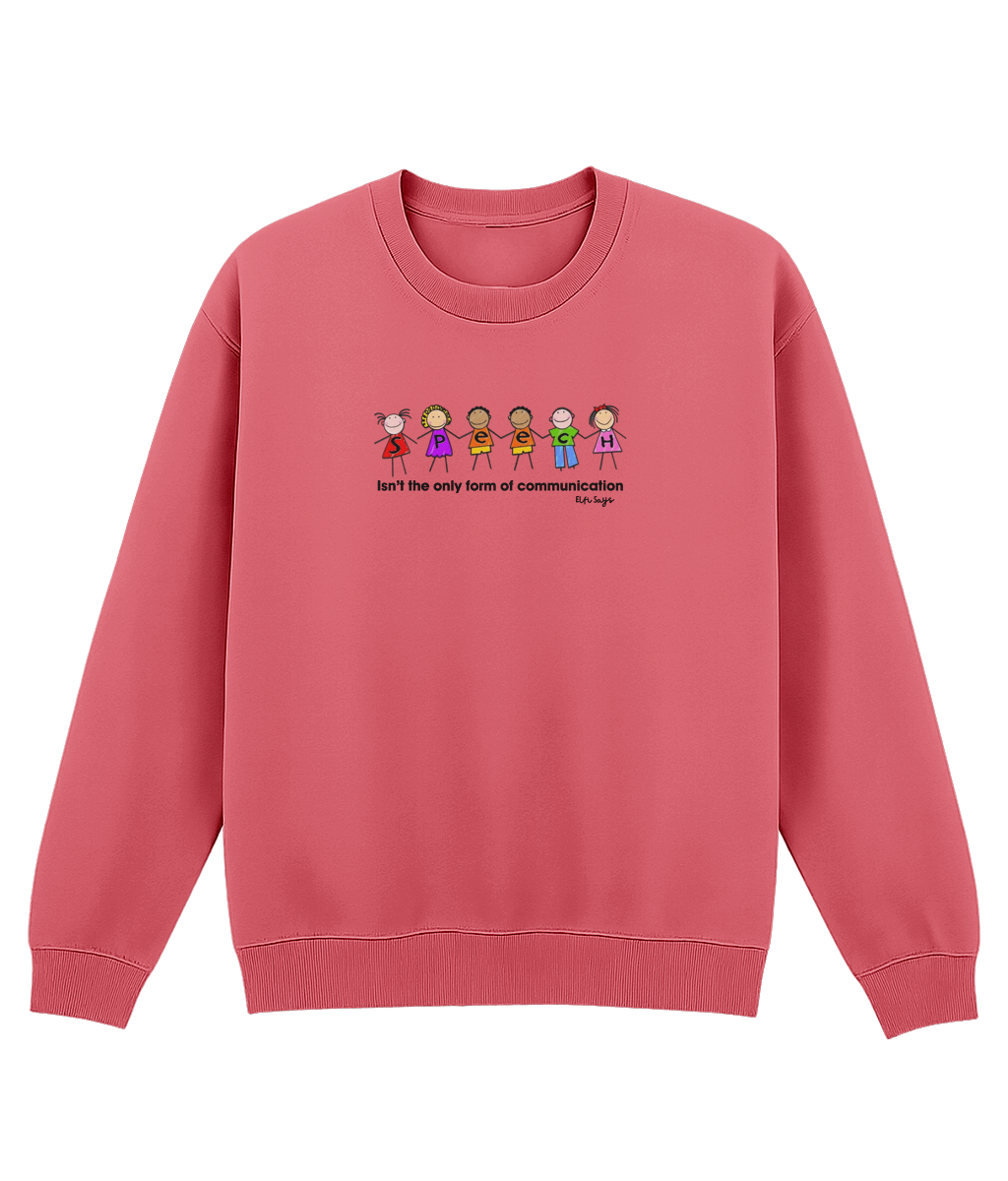 ELFI SAYS sweatshirt with “Speech isn’t the only form of communication” design — a warm, wearable message supporting inclusive communication.